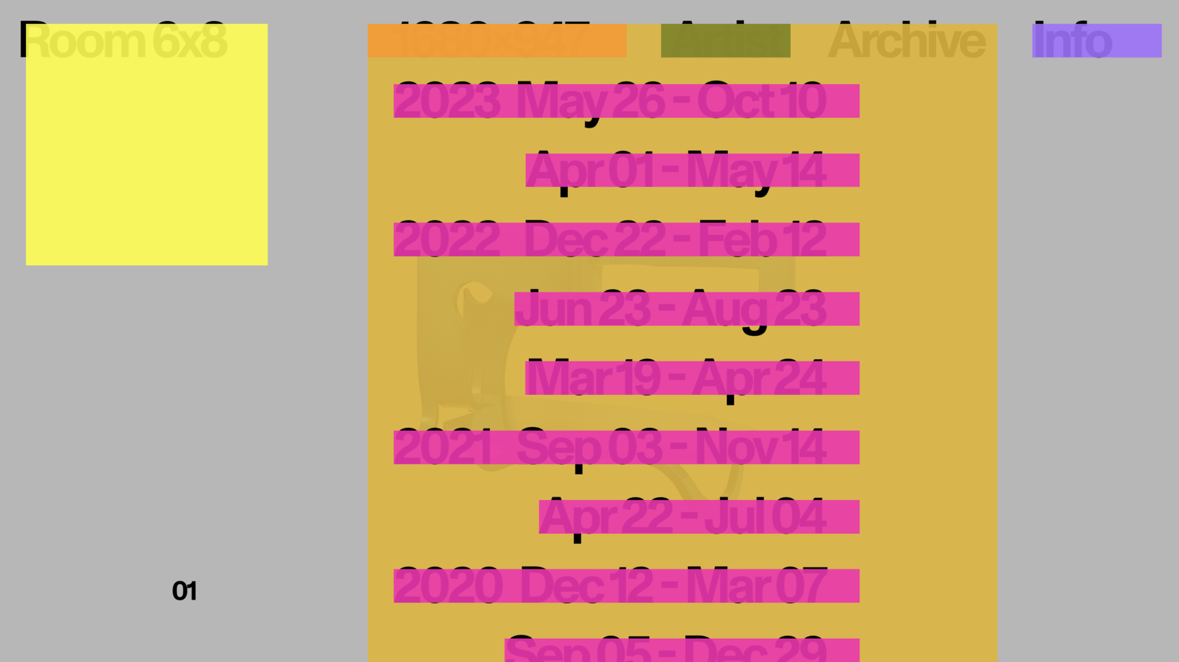 Галерея Rm68 основана на деконструкции выставочного пространства площадью 48 квадратных метров. Являясь «нетипичным» интерактивным пространством как для современного искусства, так и для современного дизайна, Комната 6×8 ставит перед художниками и дизайнерами уникальные задачи в поисках экспериментальных выставочных предложений, выходящих за рамки традиционного выставочного пространства «белого куба» музея и галереи, чтобы разнообразить кураторский опыт, чтобы исследовать создание неограниченного многомерного опыта в ограниченном физическом пространстве новой формы для современной галереи и передать отношение к открытому обмену и участию в жизни.